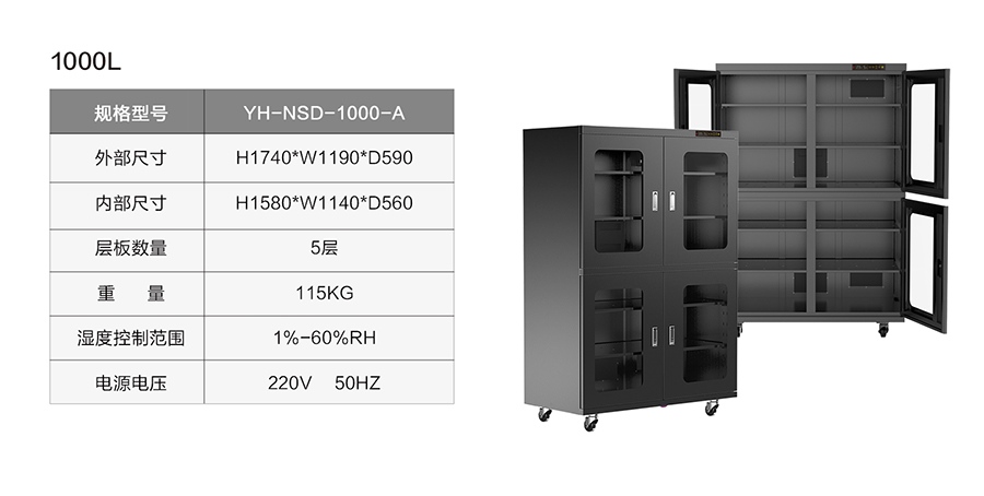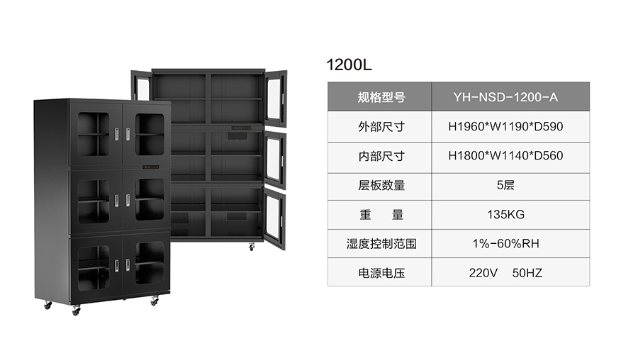 湿度范围:1%-50%RH可调,根据物品储存湿度选择对应的除湿湿度。
