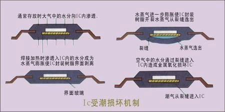 据统计,全球每年有1/4以上的工业制造不良品与潮湿的危害有关。封装中的半成品到下一工序之间;PCB封装前以及封装后到通电之间;拆封后但尚未使用完的IC、BGA、PCB等;等待锡炉焊接的器件;烘烤完毕待回温的器件;尚未包装的产成品等,均会受到潮湿的危害。对于电子工业,潮湿的危害已经成为影响产品质量的主要因素之一。