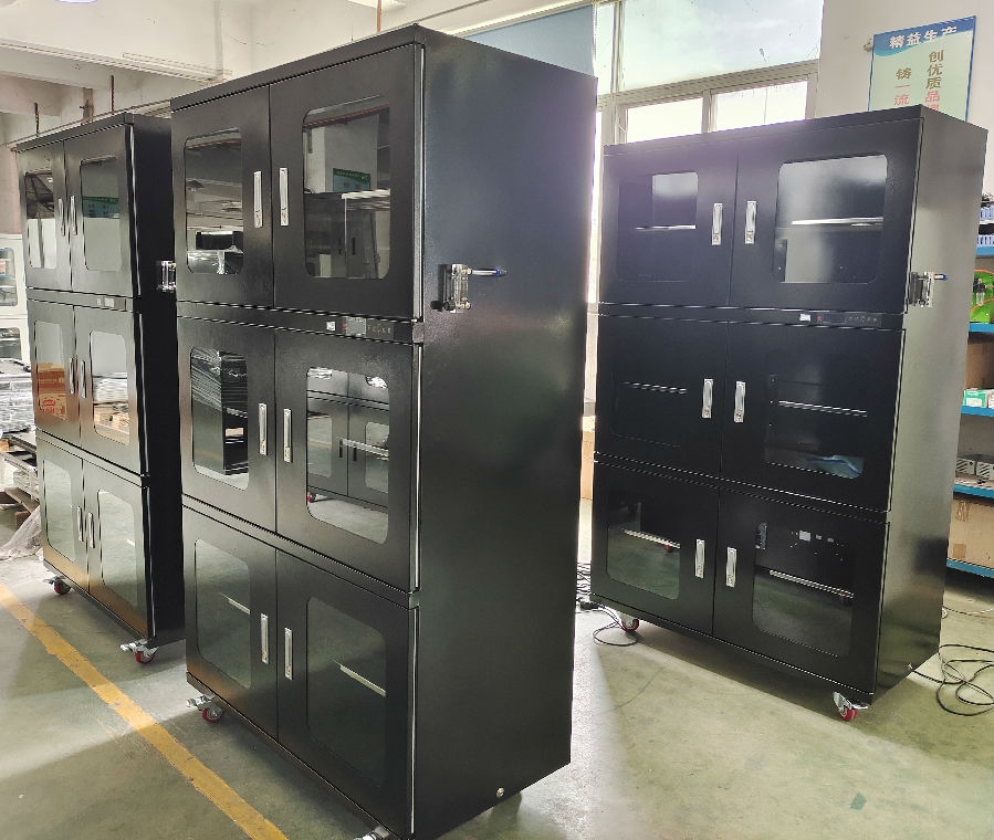 工业防潮柜,以低湿干燥自然环境,在柜里构建基本上沒有湿气的自然环境,以具有对所存储芯片防潮的目的。而将已返潮的集成ic放进干燥柜内,不仅则会让集成ic终止返潮。而与此同时,因为集成ic是曝露在低温干燥自然环境下,表层的水份也会随之储放的時间而渐渐地释放出来到柜里,而不危害集成ic。